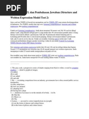 contoh soal tes toefl dan pembahasannya full before 10. contoh soal toefl itp dan pembahasannya pdf editor seattlestaff. soal toefl listening pbt paper based test dan pembahasannya 45 comments contoh soal tes toefl pbt. Untuk melihat structure test bagian 1 dan 2 silahkan kunjungi link soal tes toefl dan pembahasan kunci jawaban (structure test 1) dan soal toefl dan pembahasan jawaban (structure test 2). Tugas softskill 5 soal toefl 19.